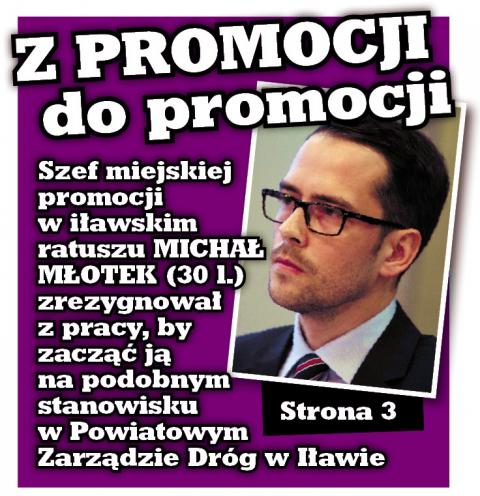 Michał Młotek (PO), kierownik wydziału promocji miasta i współpracy z zagranicą, a od niedawna także przewodniczący Rady Powiatu Iławskiego, odchodzi z iławskiego ratusza.